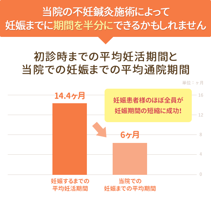 つまり当院に通院されている方は、妊娠するまでの平均期間が「約半分」になっています!