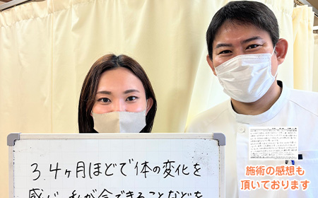 不安でいっぱいだった時、たまたまネットでこちらの整骨院を見かけ半信半疑ではあるものの口コミもよかったので試しに行ってみたのがきっかけです。