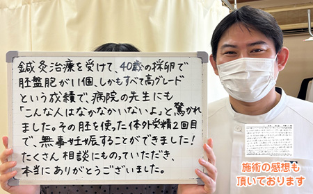 当院での鍼灸治療が、多くの妊娠を望む方々のお役に立てています。